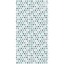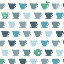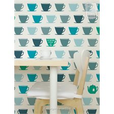 Het patroon van dit theekopjes patroonbehang is maar liefst 300 cm hoog bij 150 cm breed. Daarom bestaat deze rol behang (totale lengte 9 meter) uit drie losse banen van elk 3 meter lengte. Deze banen zijn allemaal net wat anders, maar sluiten uiteraard wel naadloos op elkaar aan. Zo ontstaat er een afwisselend patroon doordat het theepotje, het theekopje met het koekje, het kopje met de tekst en die met het muntblaadje op elke baan op een andere plek zitten. Op de 3e afbeelding zie je drie banen naast elkaar. Het is mogelijk om twee of meer rollen naar elkaar te plakken: de eerste baan van de volgende rol sluit precies aan op de laatste baan van de eerste rol.