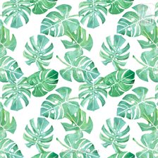 - De kleur van de monsterabladeren is groen en de achter grond van het behang is vergrijsd donkergroen (teal)