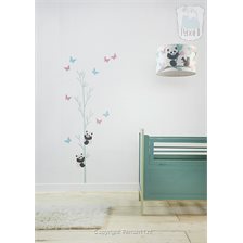 Muurstickerset Pandas met bamboe en vlinders blauw
