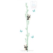 Deze super leuke set van een bamboe spruit, 2 baby panda's en 3 blauwe vlinders fleurt elke ruimte in je huis op! Bijv. de kinderkamer, de gang, je eigen slaapkamer of keuken. Geheel naar eigen inzicht te plakken: zoals op het voorbeeld, maar bijvoorbeeld ook als kleinere bamboeplant of 2 bamboeplanten.
