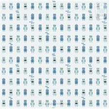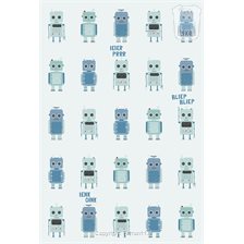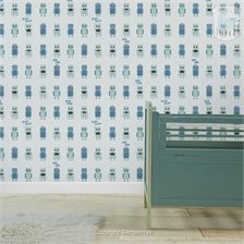 Het patroon herhaalt zich pas na 75 cm, waardoor er lekker veel te kijken is. Bijna elke robot is een tikje anders, of staat in elk geval net weer op een andere plaats. De een zwaait vrolijk en zegt 'Bliep bliep', de ander zet zichzelf stiekem aan. Robot Sateliet stuurt de boodschap Ienk Oink de ruimte in, terwijl de ander ratelend opstart. Kortom: deze robotjes prikkelen de fantasie van je kind! Maar doordat de robots toch netjes in een rijtje staan én door de kleuren blauw en mint, oogt het geheel op de wand toch rustig.